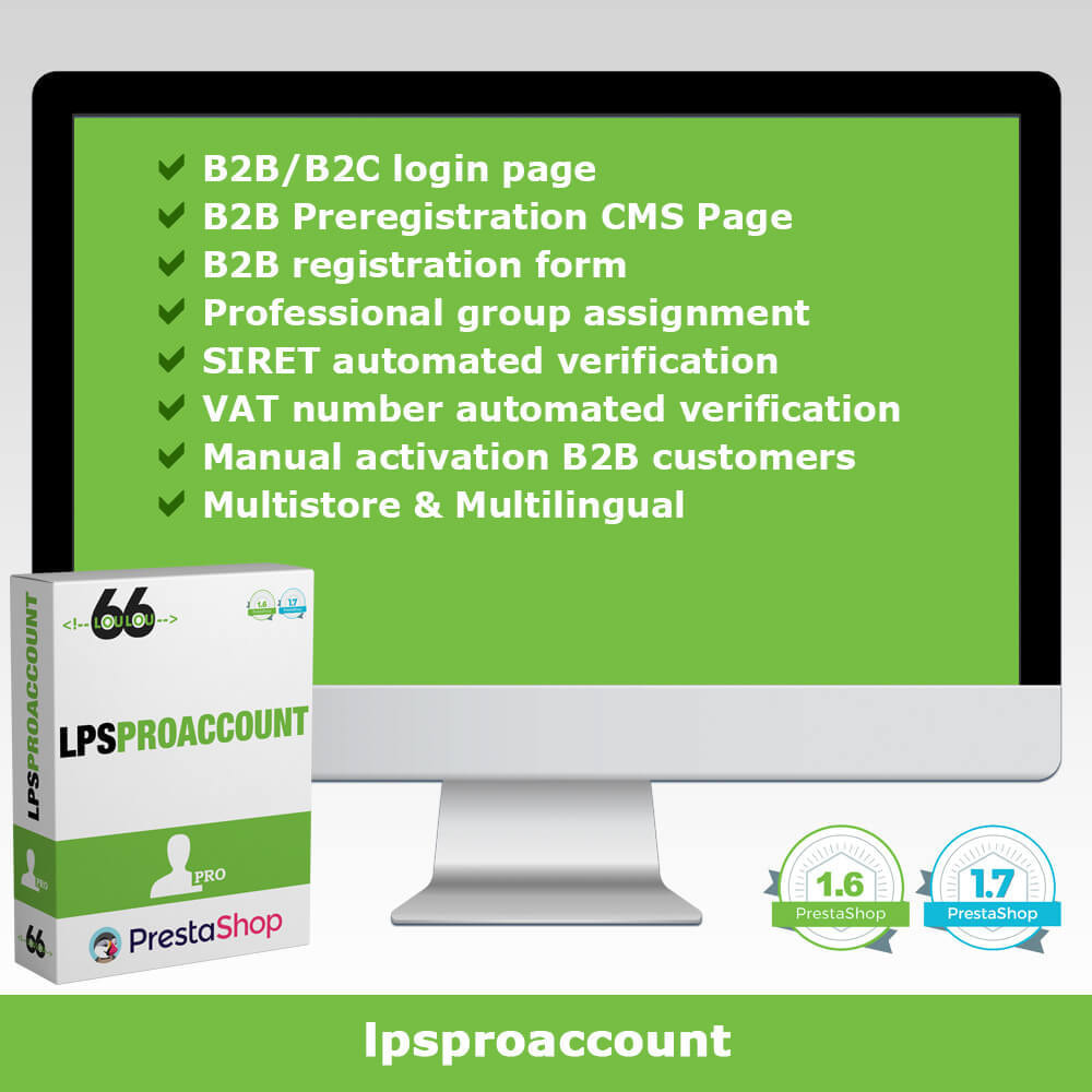 B2B kayıt formu, otomatik SIRET ve KDV numarası doğrulama, ülkeye bağlı olarak özel gruplarda otomatik atama. B2B müşterilerinize, B2B pazarının özel ihtiyaçlarına göre uyarlanmış profesyonel hesap oluşturma olanağı sunun.
